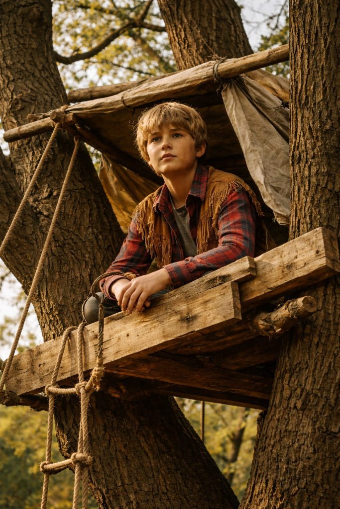 Die Baumhütte war die ehrgeizigere Version dieser Grenze: höher, gefährlicher, prestigeträchtiger. Wer oben saß, hatte nicht nur Überblick, sondern eine Erzählposition. Von dort konnte man beobachten, ohne gesehen zu werden. Beobachtung war ohnehin ein eigenes Fach: Wie lange bleibt jemand auf dem Weg? Wer kommt wieder? Wer biegt ab? Schon in solchen Fragen liegt eine frühe Schule des Weltlesens.