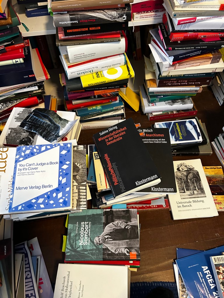 Der Text referiert pflichtschuldig Hans Jonas, Tugendethik, Naturwissenschaft plus Ethik, dazu Carla Hinrichs mit ihrem Bericht über Aktivismus und Staatsgewalt, und Sighard Neckel mit dem Hinweis, dass Kapitalismus und Klimapolitik keine glückliche Ehe führen. Das ist alles nicht falsch. Im Gegenteil: Es ist oft sogar vernünftig. Nur liegt gerade darin das Problem. Die Vernünftigkeit wird hier in Watte gepackt. Alles ist bedacht, ausgewogen, eingeordnet, anschlussfähig. Sogar die Verzweiflung kommt geschniegelt daher. Auf der nächsten Seite stehen die Bücher geschniegelt im Studio-Licht gleich mit dabei, als hätte man für die Katastrophe noch schnell einen Produkttisch aufgebaut. Die Welt geht zugrunde, aber bitte in ordentlicher Auslage.