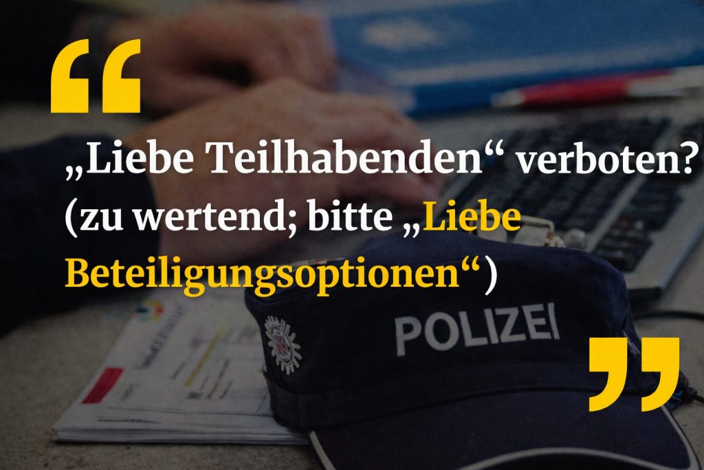 „Liebe Teilhabenden“ verboten? (zu wertend; bitte „Liebe Beteiligungsoptionen“)