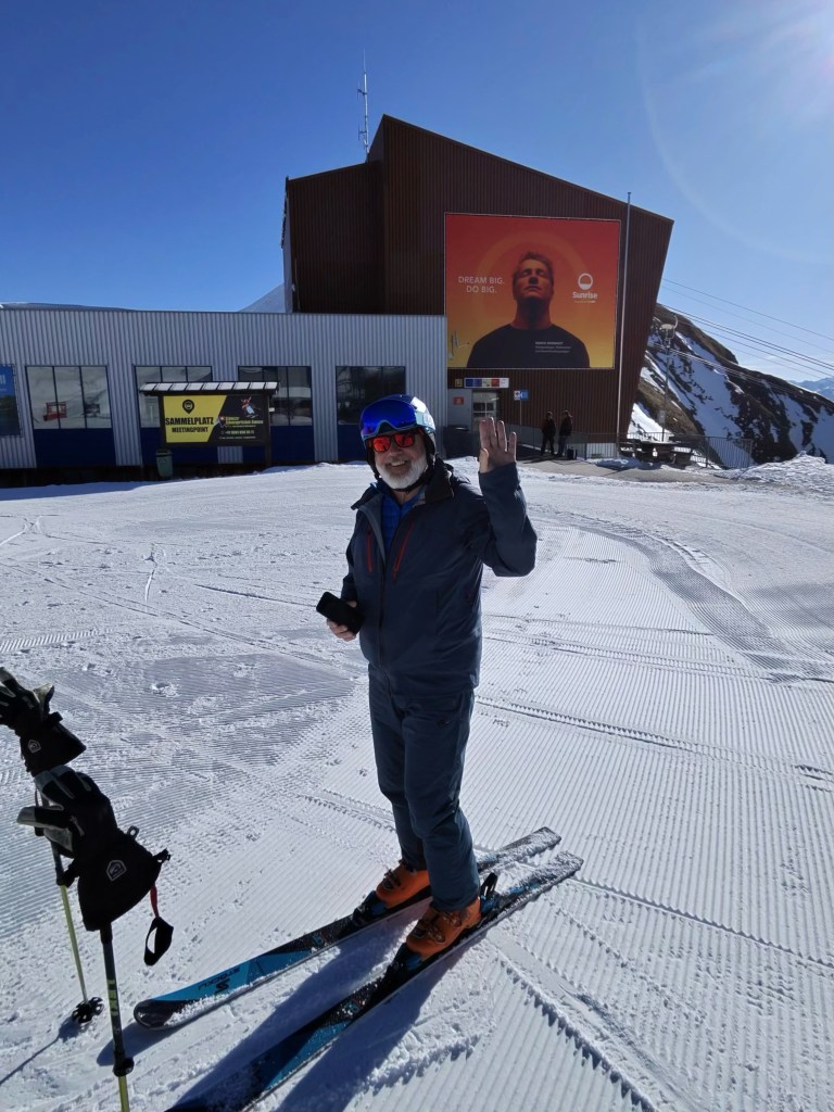 Einer der schönsten Nebeneffekte dieser Fahrt war die späte pädagogische Gerechtigkeit. Seit der Abizeit kein Skikurs mehr – und dann, mit 65, doch noch einmal „Unterricht“, der sitzt. Andreas und Claus vermittelten nicht jene belehrende Sportdidaktik, an der jeder Schwung moralisch aufgeladen wird, sondern eine Technik, die plötzlich Sinn ergab: Rocker-Ski, All-Mountain, Radius, Kantenschliff, Vorlage, Druckpunkt. Vor allem aber die Einsicht, dass modernes Fahren im Wesentlichen auf einer sauberen Kante beruht – und dass ein 87er-Schliff nicht nur Materialpflege, sondern beinahe schon Charakterbildung ist.
