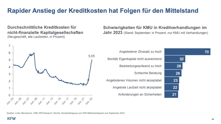 Die Finanzierungssituation stellt eine weitere Herausforderung dar. Im letzten Jahr stieg die Anzahl der Kreditnehmer im Mittelstand für Investitionszwecke deutlich auf 763.000. Das Volumen der Kreditfinanzierung von Investitionen erhöhte sich im Jahr 2022 auf 76 Milliarden Euro, was etwa 32 Prozent der Investitionen entspricht. Für dieses Jahr zeichnet sich jedoch eine Trendwende ab. Im dritten Quartal gaben 32 Prozent der mittelständischen Unternehmen zu Protokoll, auf restriktive Banken bei Kreditverhandlungen gestoßen zu sein. „Obwohl dies nicht bedeutet, dass sie keinen Kredit erhalten haben, zeigt es doch, dass die Verhandlungen schwieriger waren. Im letzten Jahr gab es einen Rekord an erfolgreich abgeschlossenen Kreditverhandlungen, ob sich dies in diesem Jahr wiederholen wird, ist jedoch fraglich“, betont Köhler-Geib.