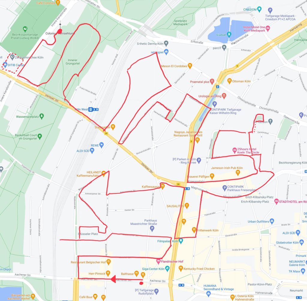 Treffpunkt ist im Belgischen Viertel. Wir starten an der Volksbühne mit einer Rikscha: Aachener Str. 5, 50674 Köln.