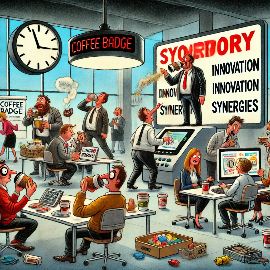 „Ich habe Meetings, also bin ich.“ Es ist eine der größten Lügen der Gegenwart, dieser bürokratische Narzissmus, der als Berufsethik durchgeht. Und jetzt, ganz neu: Coffee Badging. Ein dramaturgisches Meisterstück der Post-Zoom-Generation. Morgens ins Büro, den Chip an den Scanner halten – bip – und ab durch die Mitte. Die Täuschung als Kunstform! Wer hätte gedacht, dass man mit einem Badge und einem Espresso das Dasein als produktiver Mitarbeiter vortäuschen kann?