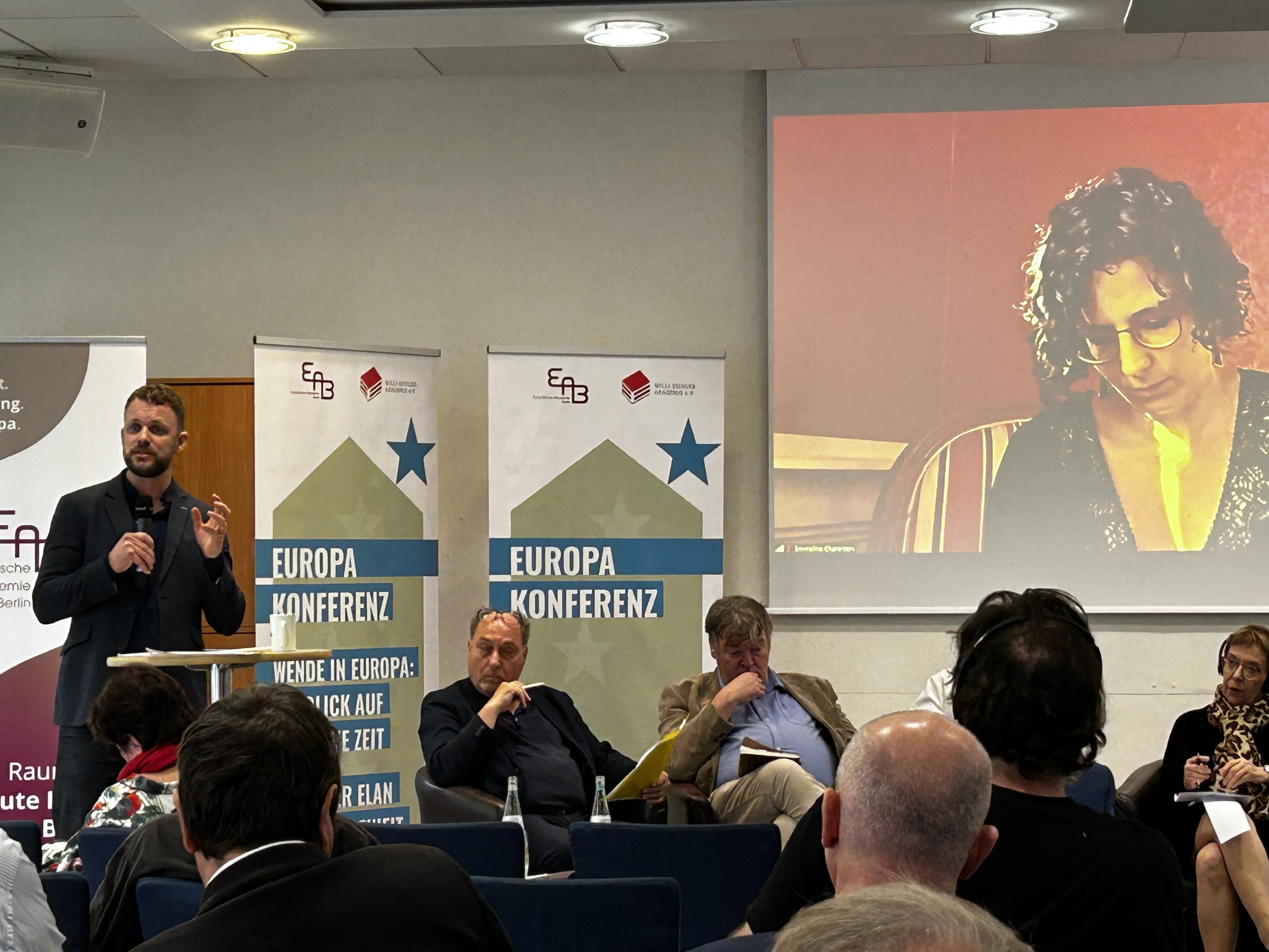 Panel mit René Cuperus, Emmeline Charenton, Robert Misik, Maurice Höfgen, Dr. Lale Akgün, Robert Peter, Eszter Nagy, Siebo Janssen. Moderation: Hendrik Küpper. Keynote: Mikael Leyi.