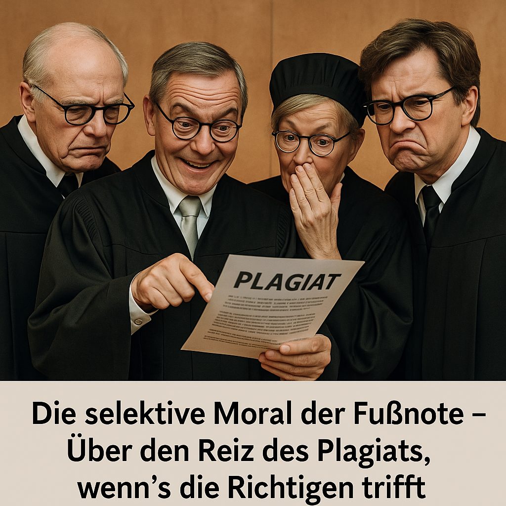 Doch heute? Heute hat die Moral der Fußnote ein Parteibuch. Plagiat ist keine Wissenschaftssünde mehr – sondern ein identitätspolitisches Minenfeld. Wer plagiatsfrei ist, soll den ersten Tweet werfen. Und wer beim falschen Lager die Textähnlichkeit feststellt, gilt plötzlich als Teil einer Verschwörung.