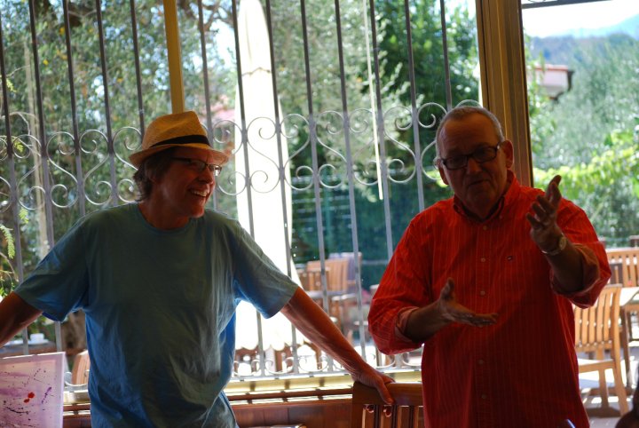 Das Haus – halb Festung, halb Bühne – ist das älteste des Dorfes. Gegründet von Ritter Rinaldo von Ventimiglia, einem der Grimaldi, „ein Raubritter, aber mit Unternehmergeist“, wie Greff lachend hinzufügte. Rinaldo habe die Olivenbauern „beschützt“, was in Wahrheit bedeutete: besteuert. Und über der kleinen Barockkapelle, die nur drei Mal in Italien in dieser Form existiert, saß Rinaldo zur Messe auf seiner Empore. Erst wenn er Platz genommen hatte, begann der Gottesdienst.