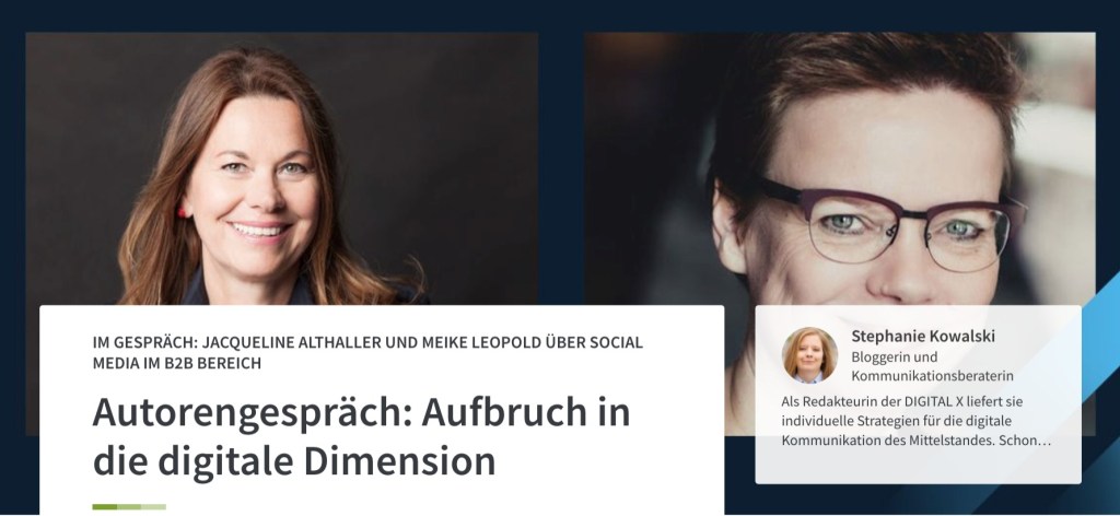 Über das Buch “Aufbruch in die digitale Dimension: Wie zehn Jahre Social Media die Businesskommunikation verändert haben” sprach Gunnar mit den beiden Autorinnen Jacqueline Althaller und Meike Leopold. Zu Beginn ihrer Existenz wurden soziale Medien in vielen Ländern, aber vor allem in Deutschland, belächelt. Mit der Zeit entwickelten sich diese Kanäle aber zu den wichtigsten digitalen Kommunikationskanälen, über die wir uns heute weltweit mit anderen Menschen, Marken und Unternehmen austauschen.