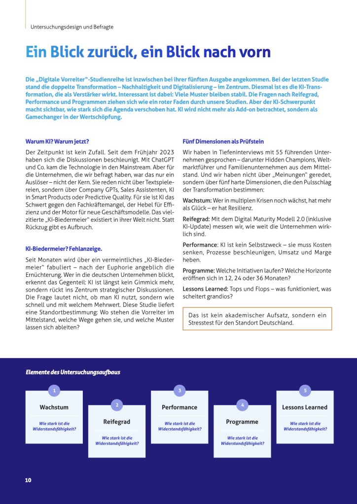 Vor diesem Hintergrund wirkt der Blick in die „Zukunftsmacher“-Studie wie ein Kontrastbild. 55 Familienunternehmen und Hidden Champions, interviewt in Tiefenstudien mit Geschäftsführern, CDOs sowie Digital- und KI-Verantwortlichen, zeigen ein anderes Muster: 87 Prozent dieser Unternehmen befinden sich auf Wachstumskurs – und das in einem Umfeld, das seit Jahren von Energiepreisschocks, geopolitischen Spannungen und Nachfrageunsicherheit geprägt ist.