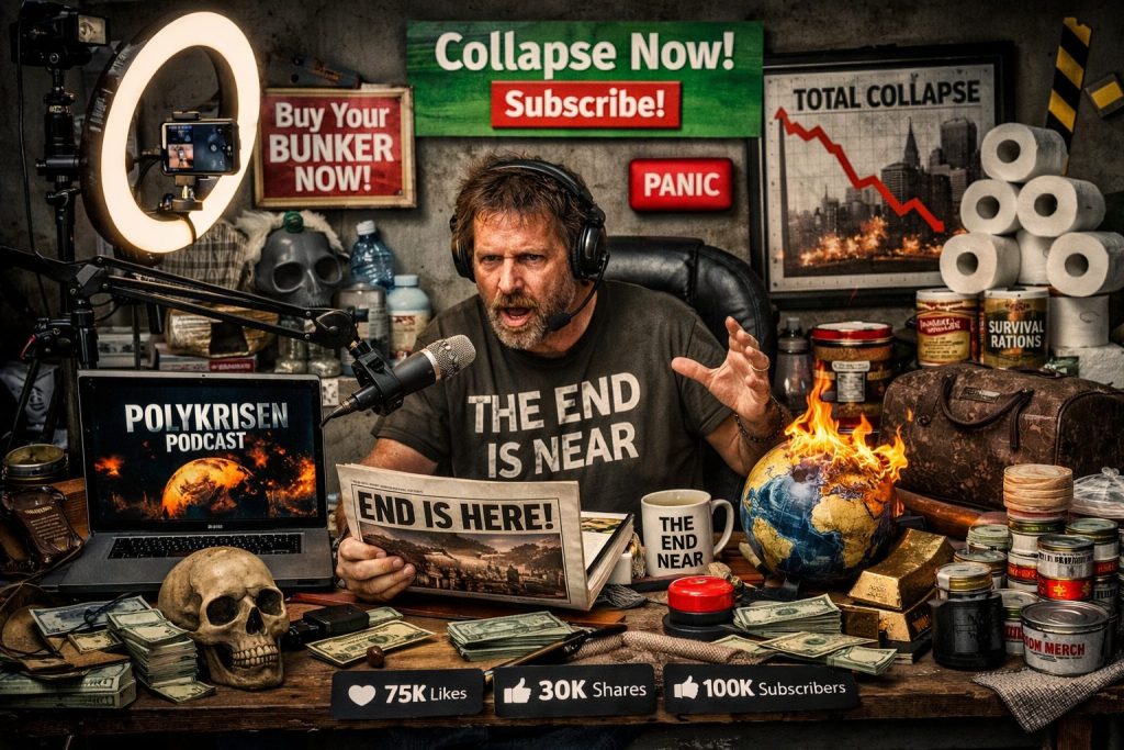 Das Kuriose am modernen Untergangsgewerbe: Es lebt von einem System, das es verachtet. Der „Kollaps“ wird über Plattformen verbreitet, die man gleichzeitig für alles Übel verantwortlich macht; monetarisiert über dieselben Mechaniken, die man als „kapitalistische Gehirnwäsche“ verdammt: Reichweite, Engagement, Klicks, Spenden, Subscriptions. Doom sells.