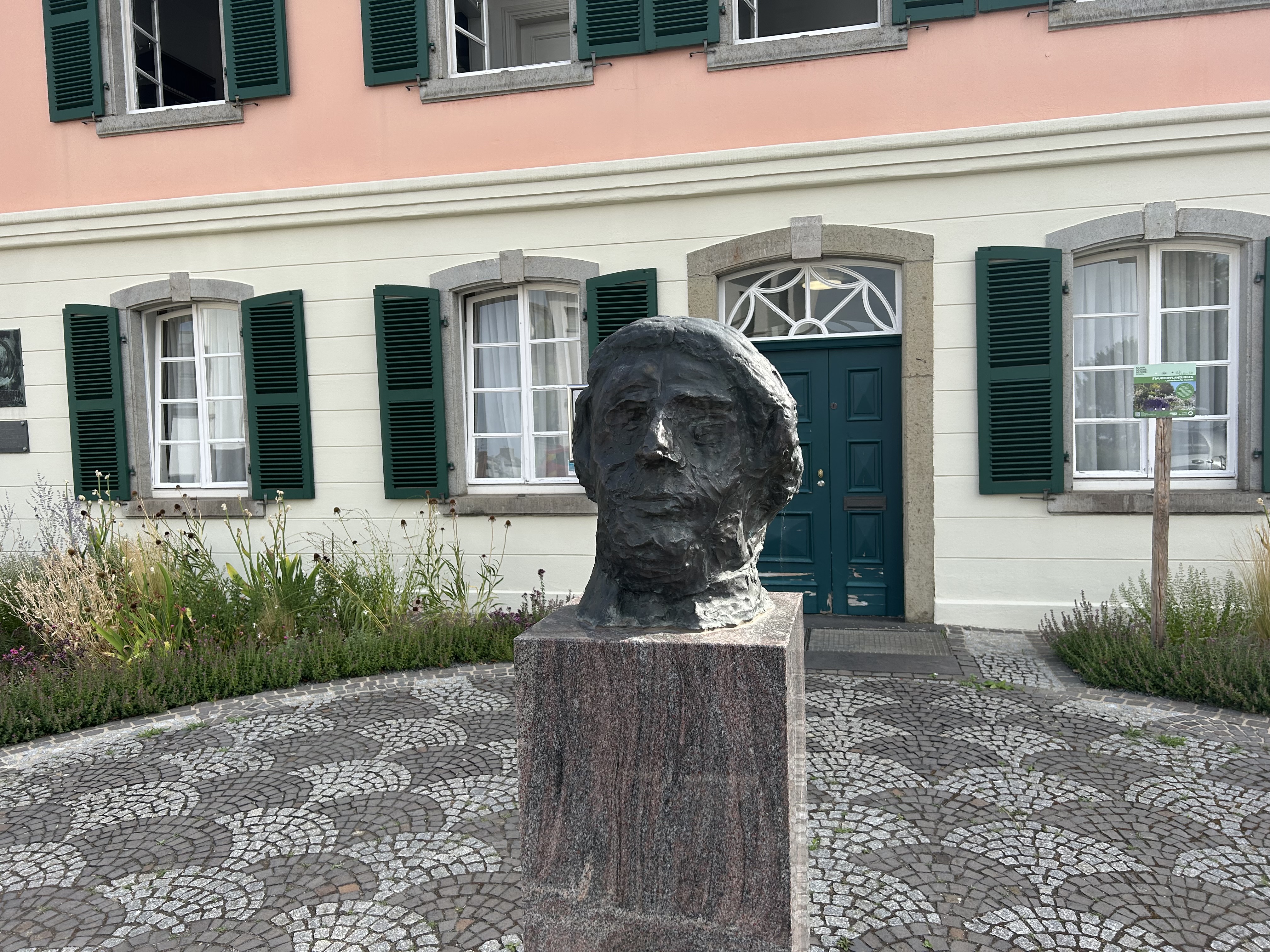 Die Heilanstalt, das heutige Schumannhaus, wurde zum letzten dauernden Aufenthalt Robert Schumanns, in der er nach hoffnungsvollen Momenten erstaunlicher Klarheit und zuweilen ungetrübten Bewusstseins schließlich langsam verdämmerte und am 29. Juli 1856 starb. Auch die letzte Ruhe fand Robert Schumann in Bonn: auf dem Alten Friedhof, wo er auf Veranlassung des Bonner Bürgermeisters Leopold Kaufmann ein Ehrengrab erhielt, in dem 40 Jahre später auch seine 1896 in Frankfurt verstorbene Frau Clara beigesetzt worden ist. Text von Ingrid Bodsch auf dem Schumann-Portal.