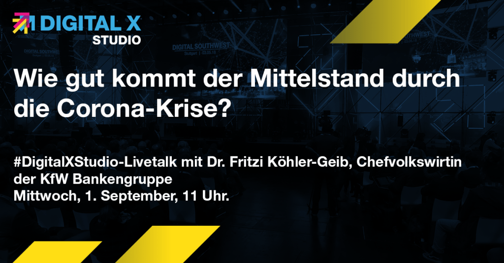 Vorbereitung auf den #DigitalXStudio-Livetalk mit Dr. Fritzi Köhler-Geib, Chefvolkswirtin der KfW Bankengruppe, Mittwoch, 1. September, 11 Uhr.