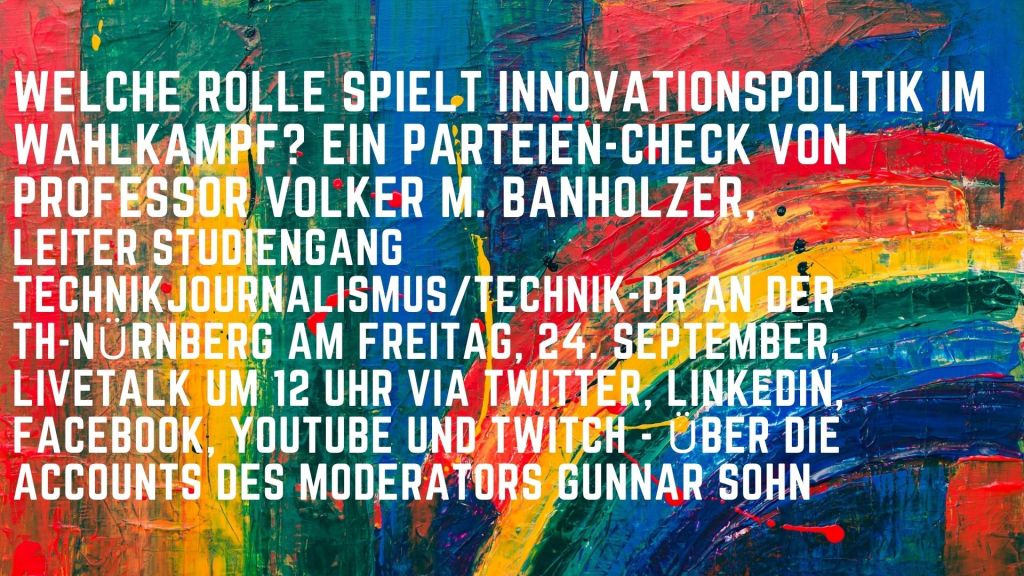 durch eine Innovationsorientierung, ja einem Innovationsimperativ in allen Bereichen gewichen (Passoth & Rammert 2018). Auch die im Bundestagswahlkampf 2021 konkurrierenden Parteien nehmen Innovationen als wesentliche Bestandteile mit auf und wollen dieses Thema für sich besetzen. In den Wahlprogrammen und den begleitenden Veranstaltungen oder Diskussionsbeiträgen von CDU/CSU, SPD, Bündnis 90/Die Grünen und FDP spiegelt sich das in unterschiedlicher Weise wider. Kommt bei Unionsparteien und FDP vor allem ein technologischer Innovationsbegriff zum Tragen, was sich in einer Betonung von Ingenieurleistungen oder dem naturwissenchaftlichen Beitrag zur Problembewältigung zeigt, so wird bei den Programmen von SPD und Bündnis 90/Die Grünen ein erweiterter Innovationsbegriff und das Hervorheben holistischer Konzepte zu einer sozialökologischen Transformation deutlich. Es wird sich nach der Regierungsbildung zur 20. Legislaturperiode einiges im Politikfeld Forschungs & Innovation (F&I) verändern bzw. es stehen Aufgaben an, die sowohl technische als auch soziale Innovationen sowie deren Kombination erfordern“, schreibt Professor Volker M. Banholzer in seinem Wahlcheck unter dem Titel: „Innovationssouveränität: Innovations-, Digitalisierungs- und Technologiepolitik als Wahlkampfthema“.