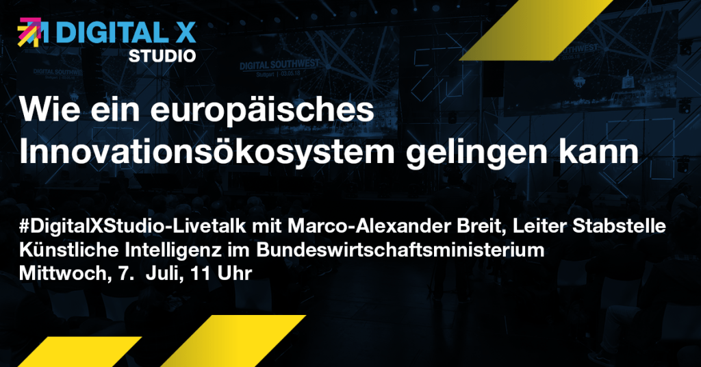 Es laufen schon Anmerkungen und Fragen auf für das #DigitalXStudio am Mittwoch, den 7. Juli um 11 Uhr. Livetalk mit Marco-Alexander Breit, Leiter Stabstelle Künstliche Intelligenz im Bundeswirtschaftsministeirum.