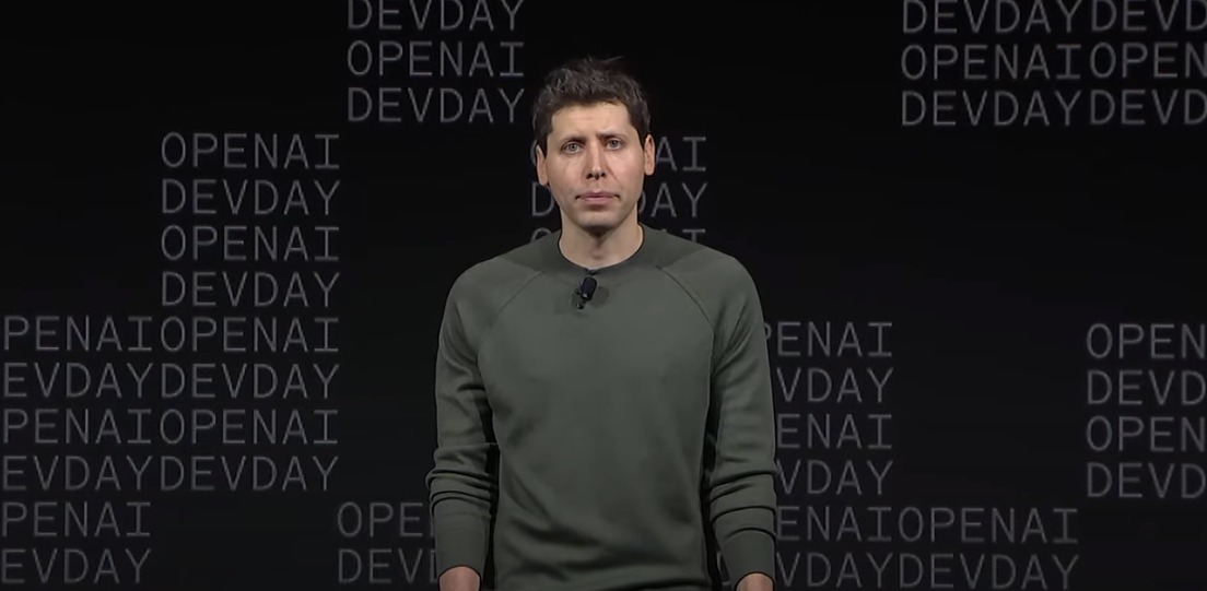 Sam Altman begrüßt uns auf der Entwicklerkonferenz von OpenAI in San Francisco mit einem Lächeln.