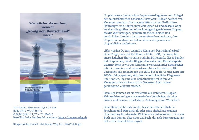 „Man kann es so sagen … viel mehr aber geben die Gespräche einen Einstieg in Diskussionen, hin zu – durchaus realistischen – Zukunftsvisionen eines demokratischen Kapitalismus (188). Ganz sicher auch für die Lehre – oder besser gesagt, in die Bildungsanteile, die einer Normierung des Denkens entgegenwirken, ob in Schule, Universität und Business Schools oder Weiterbildung. Die Gesprächsform macht die Themen zugänglicher, über 500- 1000 Seiten Piketty oder Schumpeter können immer noch folgen“, schreibt der Soziologie Klaus Janowitz über unser Utopie-Opus #KönigVonDeutschland.