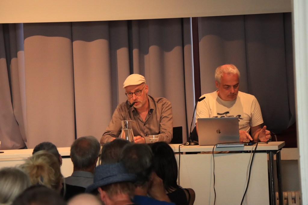 Matthias Wieland ergänzt den Abend mit klugen Fragen und technischer Expertise. Er weist auch auf die Zusammenarbeit mit dem Koloristen Thomas Gilke hin, der den „Gegenwartsteil“ der Geschichte besonders farbintensiv gestaltet hat – im Gegensatz zu Kleists eher gedecktem Farbton für die Rückblenden.