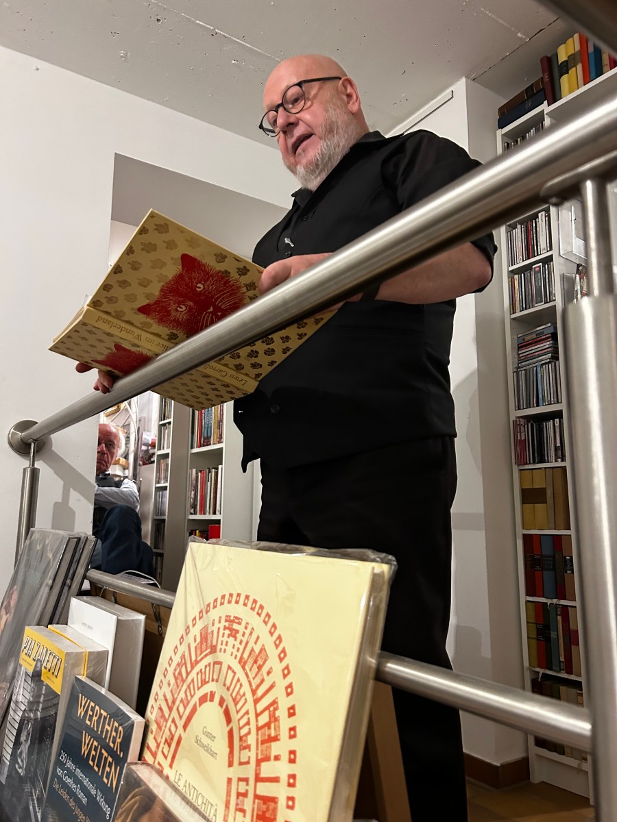 Wer in Frankes Collagen nach Illustrationen sucht, findet vielmehr: Parabeln auf das Halteproblem. So wie Borges einmal schrieb, die Landkarte werde zur Größe des Imperiums selbst, so dehnt sich bei Franke das Bild bis zur Philosophie – und zurück. Im Zentrum der Lesung: „Die Scheibe“ – eine Borges’sche Parabel über einen Holzfäller, der einen alten Mann erschlägt, um die Scheibe mit nur einer Seite zu besitzen. Natürlich findet er sie nicht. Der Gedanke ist gödelsch: In einem geschlossenen System lässt sich die Wahrheit der Ausgangsaussage nicht endgültig beweisen. Die Scheibe bleibt verschwunden, gerade weil sie zu offensichtlich ist.