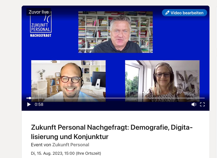 Ihr findet die Beiträge auch auf dem YouTube-Kanal von Zukunft Personal und auf meinen Twitter-Twtich-Facebook-Accounts. Also alle Plattformen, die Livestreaming-Aktivitäten wichtig sind.