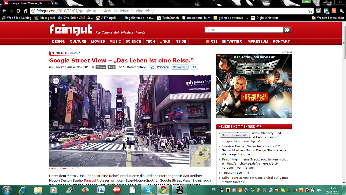 Woher kommt also dieser deutsche Verpixelungssonderweg? Jarvis hat die Klage gehört, dass Google mit seinen Bemühungen, das Straßennetz zu kartieren und zu fotografieren, nur Geld verdienen will. „Dabei fotografiert auch die deutsche Regierung das Land und verkauft die Daten (wie der Bundesinnenminister mir via Videobotschaft mitgeteilt hat, gs). Telefonbuch.de von T-Mobile listet nicht nur Namen und Telefonnummern der Bürger auf, sondern es zeigt auch Luftaufnahmen ihrer Häuser und Höfe – aus vier verschiedenen Perspektiven. Sightwalk.de tut dasselbe wie Google Street View. Wer protestiert dagegen? Liegt es daran, dass Google ein amerikanisches Unternehmen ist? Ich hoffe nicht“, schreibt Jarvis.