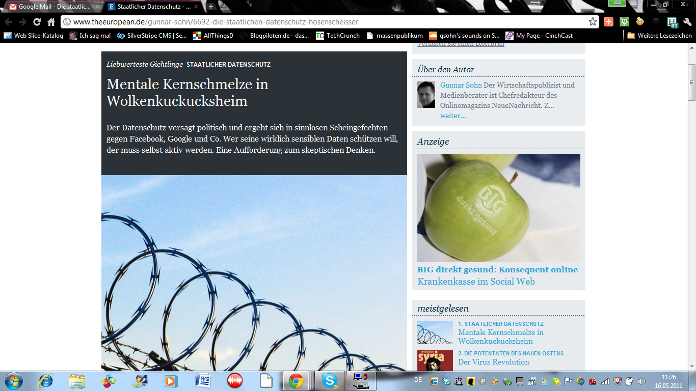 Ich werde das Spektakel in meiner Montagskolumne verarbeiten. Bitte postet mir doch Eure Meinung zu dieser Geschichte. Oder per E-Mail an: gunnareriksohn@googlemail.com – ich zähle auch zu den unwissenden Anwendern, die sich von Google einlullen lassen…..