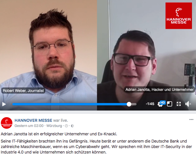 Adrian Janotta hat eine Biografie, wie aus einem Film, so Robert Weber. Software-Entwickler. Freundin hat ihn verlassen, dann abgestürzt, Job verloren, dann Shops im Internet gehackt, erwischt worden (Update von RW: Wurde nicht beim Hacken erwischt – darauf legt er Wert. War eine Verkehrskontrolle – Alkohol – und dann haben die ein paar Festplatten im Kombi gefunden). Kam in den Knast, hat Uli Hoeneß im Gefängnis getroffen und hinter den schwedischen Gardinen BWL studiert. Direkt nach der Freilassung gründete Janotta eine Security-Firma und berät mittlerweile die Deutsche Bank und mittelständische Maschinenbauer. Naiv bei der IT-Sicherheit seien nicht nur die Unternehmen, sondern auch die Sicherheitsfirmen, warnt Janotta: