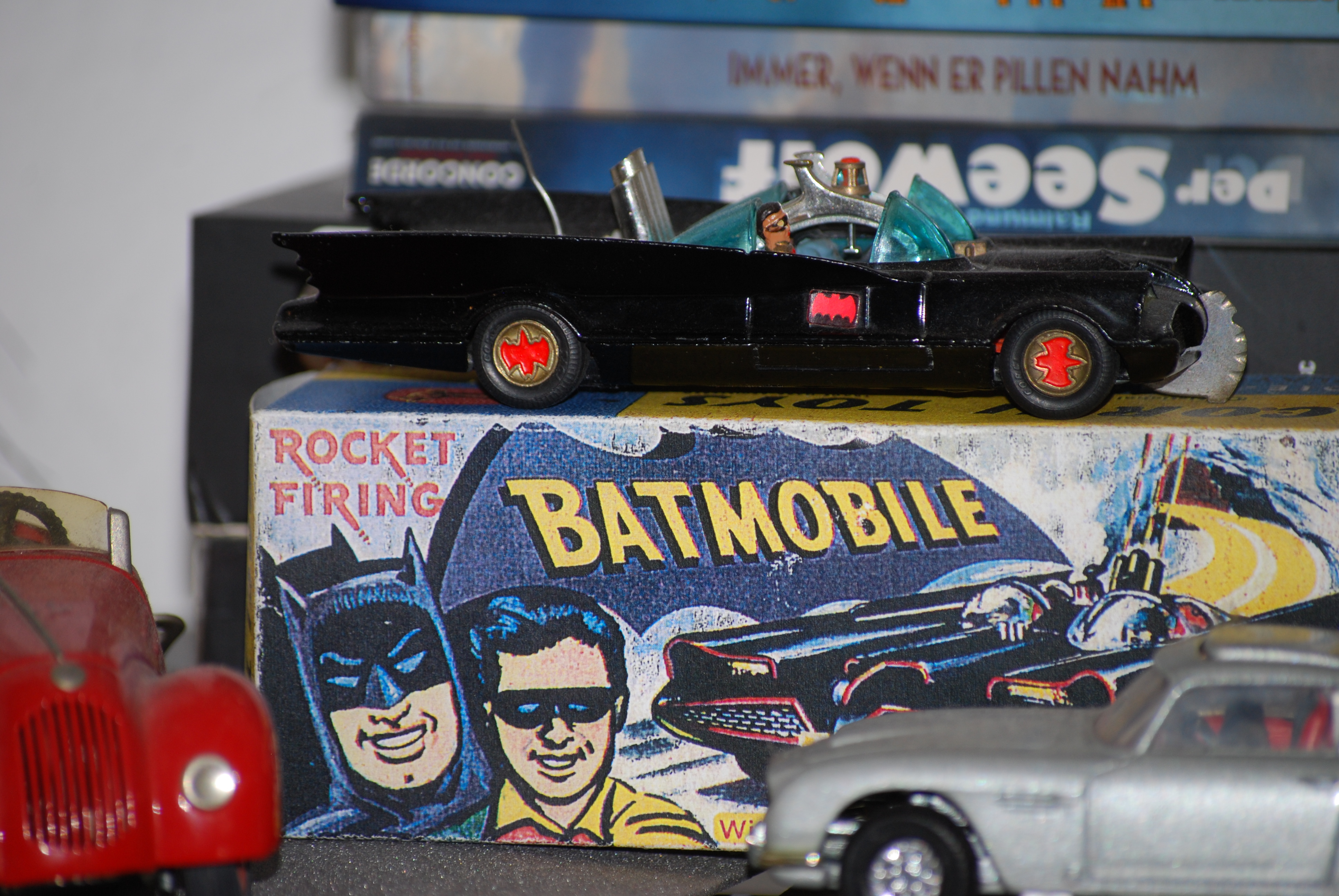 Ob das Batmobile dabei helfen kann, ist fraglich. Ist halt mein liebstes Sammlerstück von altem Spielzeug, das früher mal mein Kinderzimmer bevölkerte.