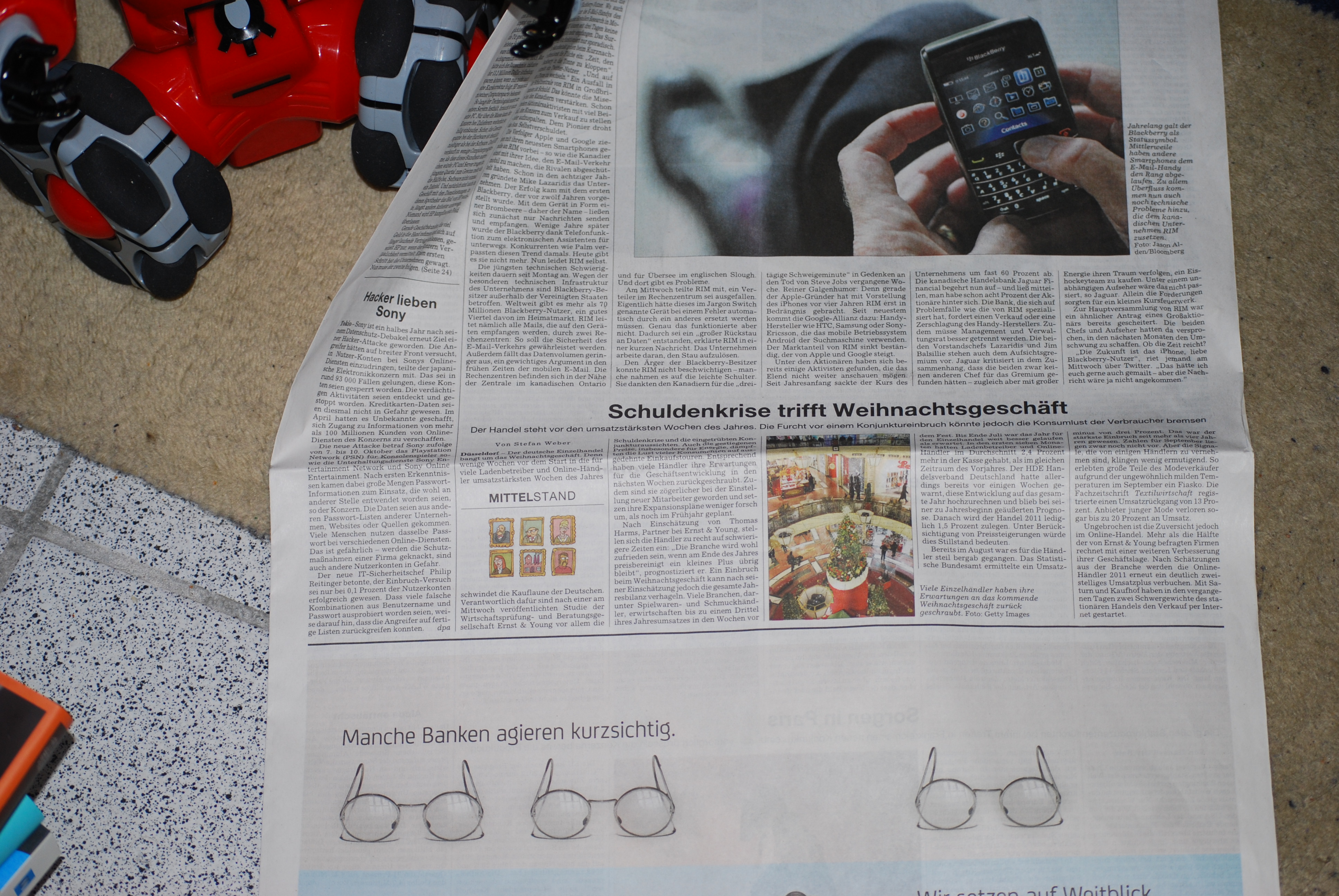 Auch die von mir angeführte Allensbach-Jahresumfrage über Hoffnungen und Befürchtungen ist ja nur ein grober Indikator für den Konjunkturverlauf. Stimmungslagen sind auch das Ergebnis von sehr verschiedenen Faktoren. Allerdings hat sich dieses Stimmungsbarometer für meine Konjunkturprognosen als recht hilfreich erwiesen. Ich konnte zumindest bessere Vorhersagen treffen als die professionellen Konjunkturforscher. Anfang 2012 ist es dann wieder soweit und ich werde wieder eine Einschätzung vorlegen. Aber ich wage schon jetzt eine Aussage. Die Süddeutsche Zeitung liegt mit ihrem Artikel über das Weihnachtsgeschäft bestimmt nicht auf der richtigen Linie: „Schuldenkrise trifft Weihnachtsgeschäft“. Auch wenn der Sommer für den Handel mies gelaufen ist, wird es in den nächsten Wochen wieder kräftig in den Kassen klingeln. Die Schuldenkrise von Griechenland und Co. wird nicht auf die Konsumenten durchschlagen.