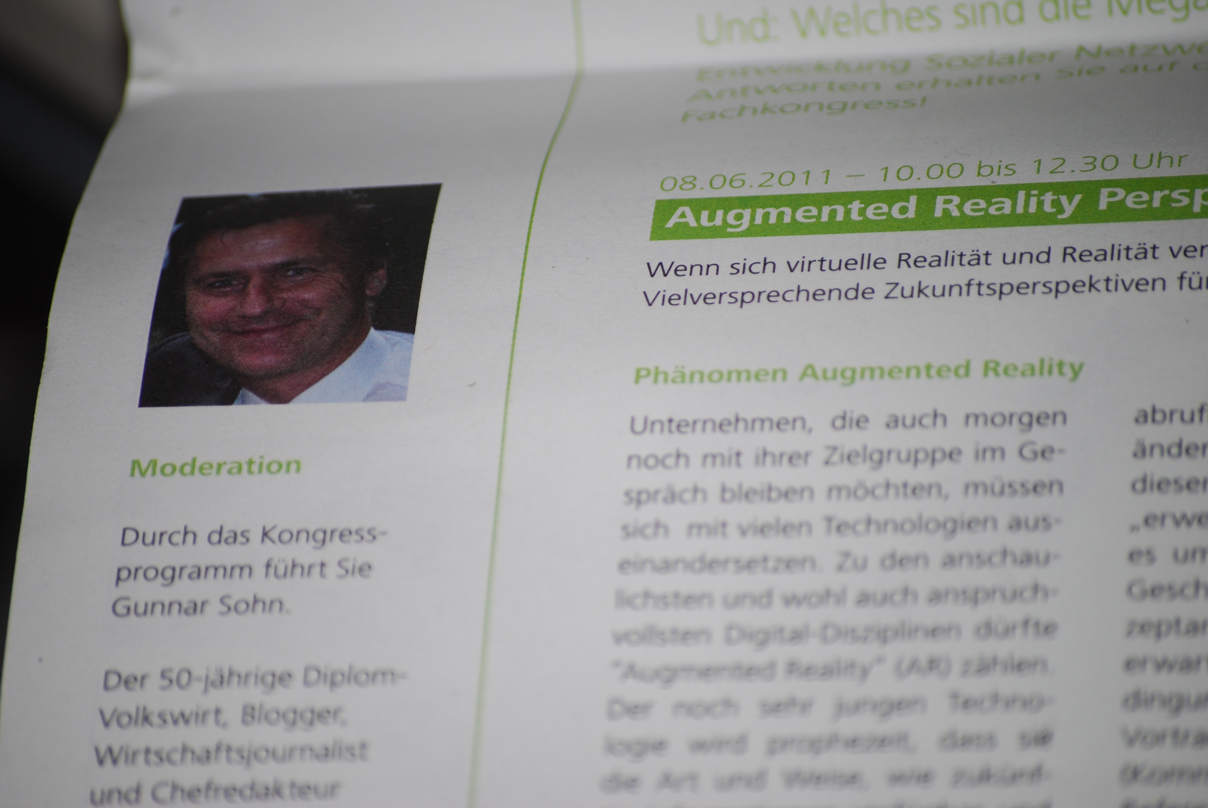 Die Bandbreite der Faktoren, die die zukünftigen Geschäftsmodelle der Unternehmen beeinflussen, ist groß: Gesetzgebung, Zielgruppenverhalten, Technologien… – Wer morgen noch Erfolg haben will, muss sich schon heute mit zahlreichen Zukunftsfragen auseinandersetzen. Einer der jüngsten Trends, der Marketing, Vertrieb und Kommunikation der Zukunft prägen könnte, macht unter dem Begriff Augmented Reality von sich reden. Ob Produkteinführung, Pre-Sales-Unterstützung, Kaufanreiz oder Service – dieser Vortrag demonstriert anschaulich:die denkbaren Einsatzfelder sind so vielfältig wie die dahinterstehenden strategischen Zielsetzungen. Entdecken Sie neue Chancen, für zukunftsorientierte (Marketing-)Strategien.