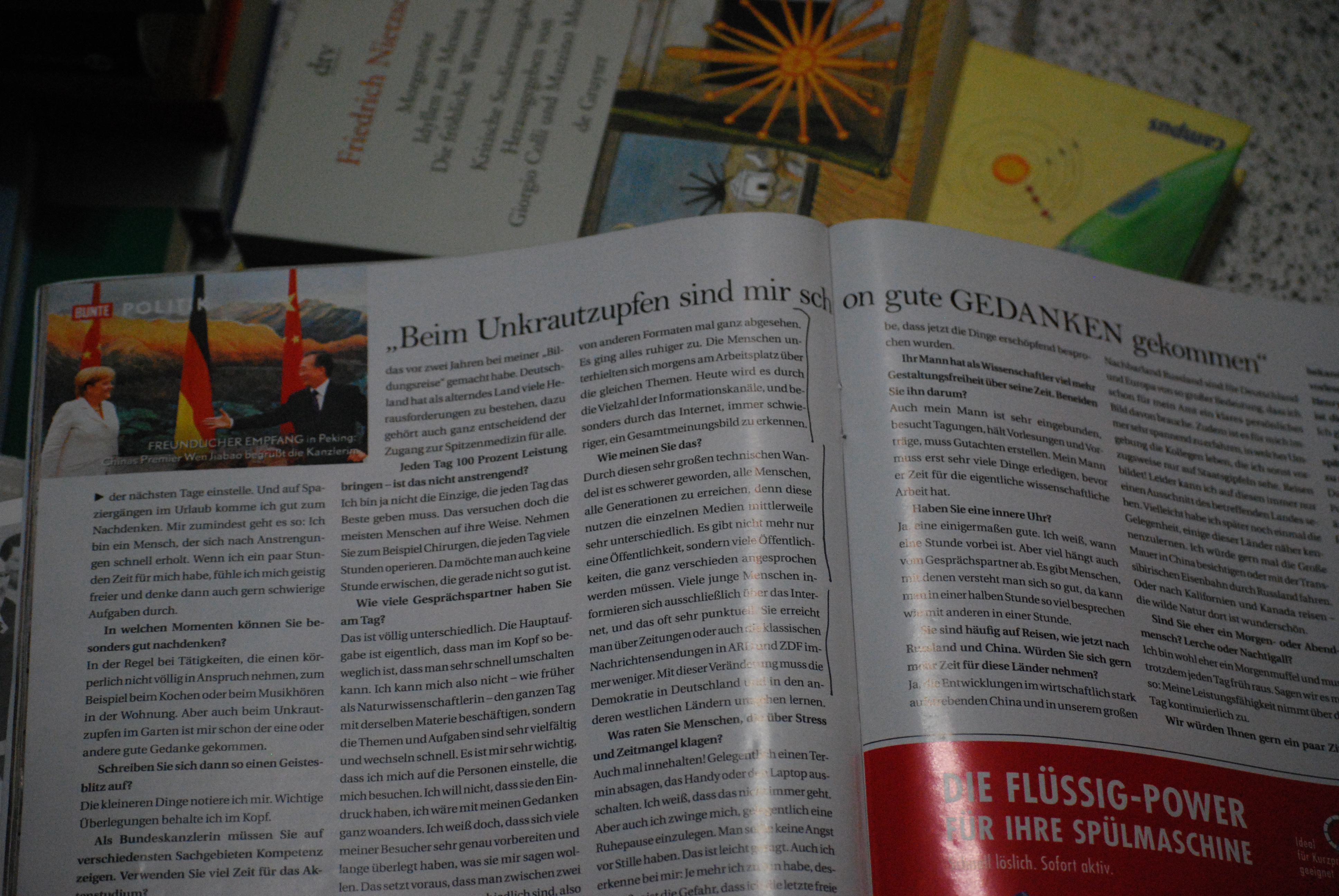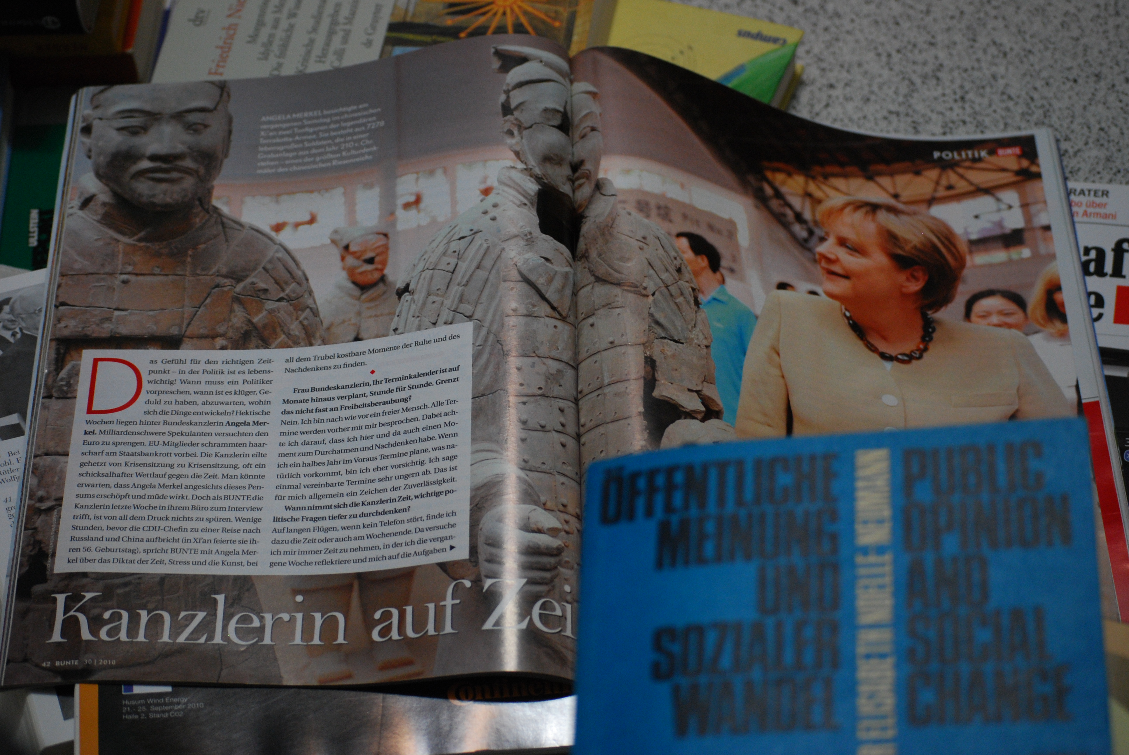 „Selbst in den 20 Jahren, in denen ich selbst in der Politik aktiv bin, hat sich das politische Geschäft noch einmal erheblich beschleunigt! Nachrichten werden heute sehr viel schneller alt. Die Vielzahl der Medien, vom Internet bis zu den zahlreichen Fernsehsendern, verlangt von Politikern ein immer schnelleres Reagieren. Früher, als es nur zwei Fernsehsender gab, gab es allein schon eine deutlich geringere Anzahl von Nachrichtensendungen, von anderen Formaten mal ganz abgesehen. Die Menschen unterhielten sich morgens am Arbeitsplatz über die gleichen Themen. Heute wird es durch die Vielzahl der Informationskanäle, und besonders durch das Internet, immer schwieriger, ein Gesamtmeinungsbild zu erkennen“, sagte die Kanzlerin im Interview mit der Illustrierten Bunte (habe mir das erste Mal diese Postille gekauft – schrecklich, werde ich nicht wieder machen, gs).