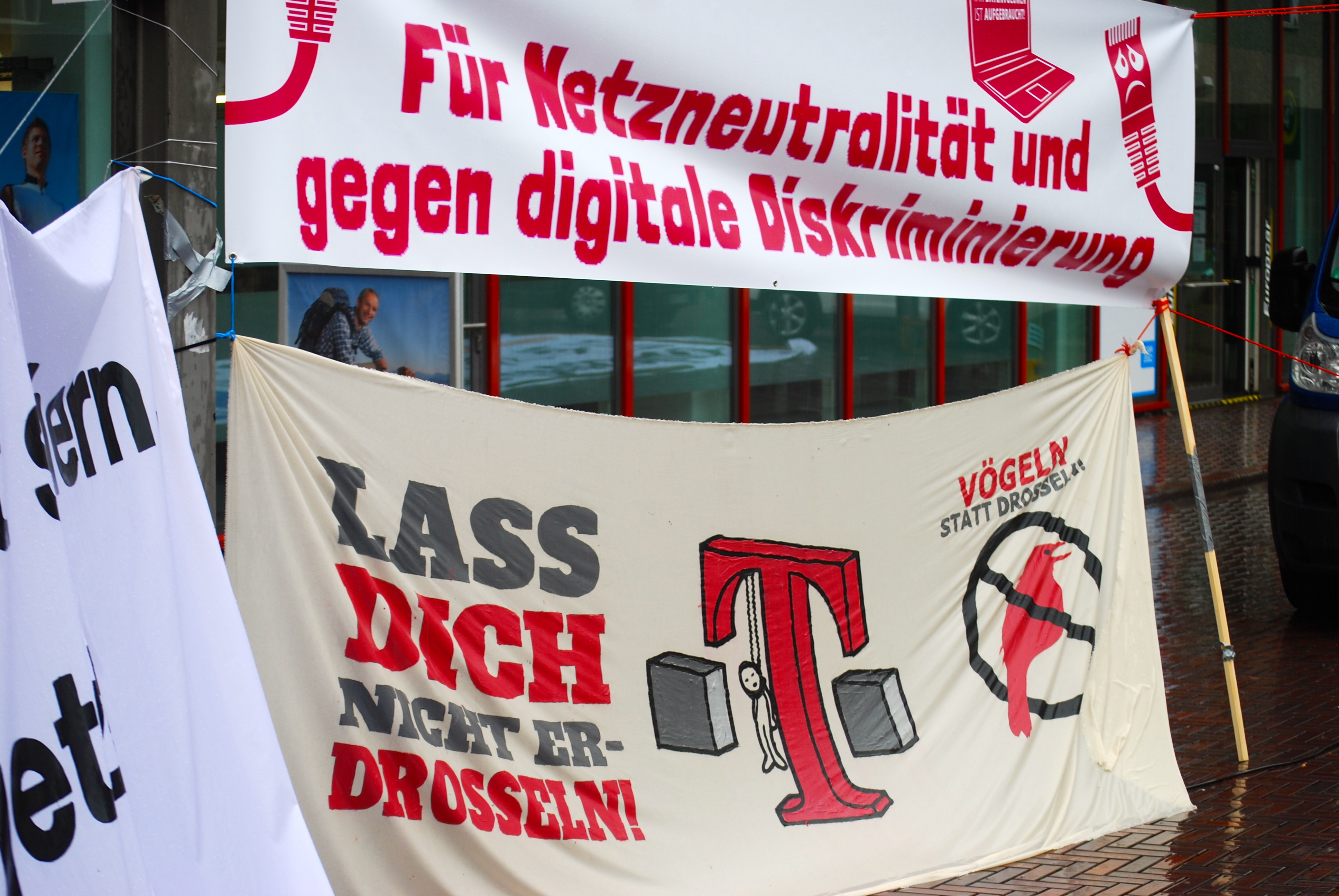 Nach dem Pressetermin redete dann noch eine kleine Entourage des Deutschlandchefs auf mich ein, dass ich eben kein Recht und keinen Grund habe, die Telekom zu verlassen. Ich sei von der Regelung als Bestandskunde nicht von der Drosselung betroffen. Auf meinen Hinweis, dass die Telekom mit dem Angriff auf die Netzneutralität über die Bevorzugung von eigenen Diensten und von Partnerdiensten ein geteiltes Internet schaffe und ich diese Linie nicht mehr mitfinanzieren wolle, folgte die arrogante Zurechtweisung eines aalglatten Telekom-Managers, ich könne ja auch einen laufenden Leasing-Vertrag nicht ohne Einhaltung der Fristen kündigen.