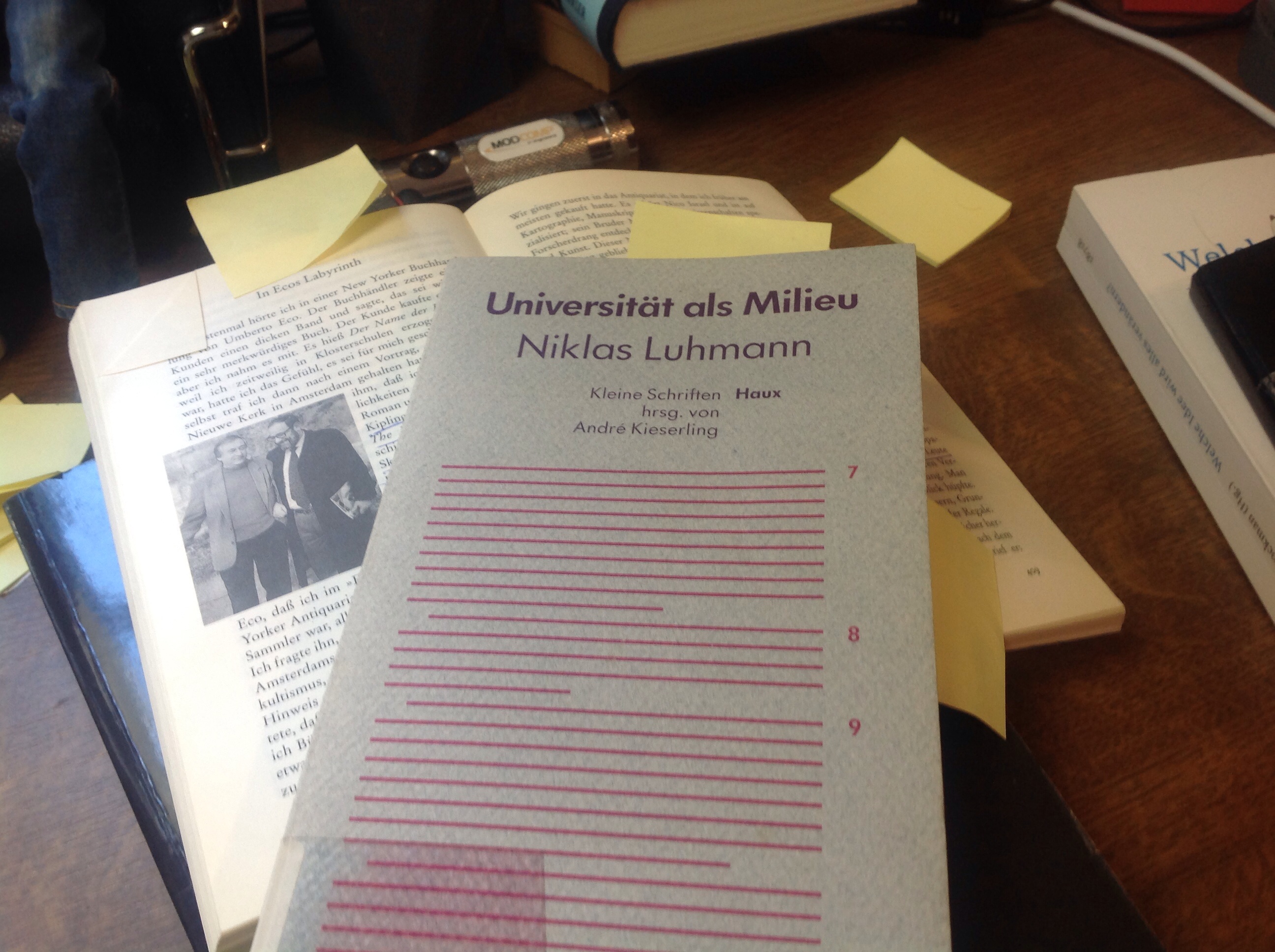 Luhmann entschied sich bekanntlich für den zweiten Weg. Wie der Zettelkasten des Systemtheoretikers genau konzipiert ist, lasse ich jetzt außen vor. Das kann man dem Schrifttum von Luhmann entnehmen – beispielsweise in „Universität als Milieu“, herausgegeben von André Kieserling.