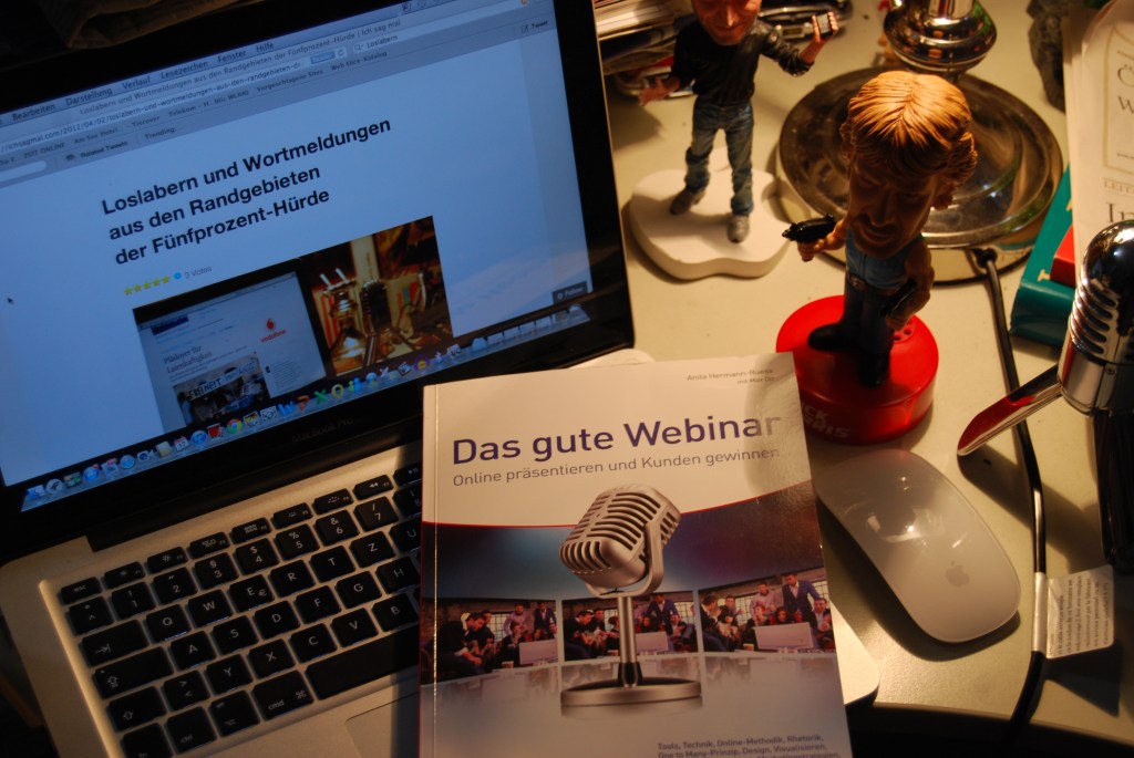 Blecherne Stimmen, verkrampfte Moderation, kaum Interaktion und Referenten, die mit einer Flut von propagandistischen Powerpoint-Folien im sonoren Ton loblabern und wehrlose Zuschauer in den Netzschlaf wiegen: Man nennt das Ganze auch Heizdecken verkaufen über so genannte Webinare. Um uns aus der Flut von belanglosen Online-Präsentationen zu erretten, kommt der Band „Das gute Webinar“ (erschienen im Addision-Wesley-Verlag) von Rhetorik-Expertin Anita Hermann-Ruess und dem Visualisierungs-Spezialisten Max Ott gerade richtig. Ich habe das Werk heute in meiner Kolumne für Service Insiders besprochen. Hier geht es zur Rezension.