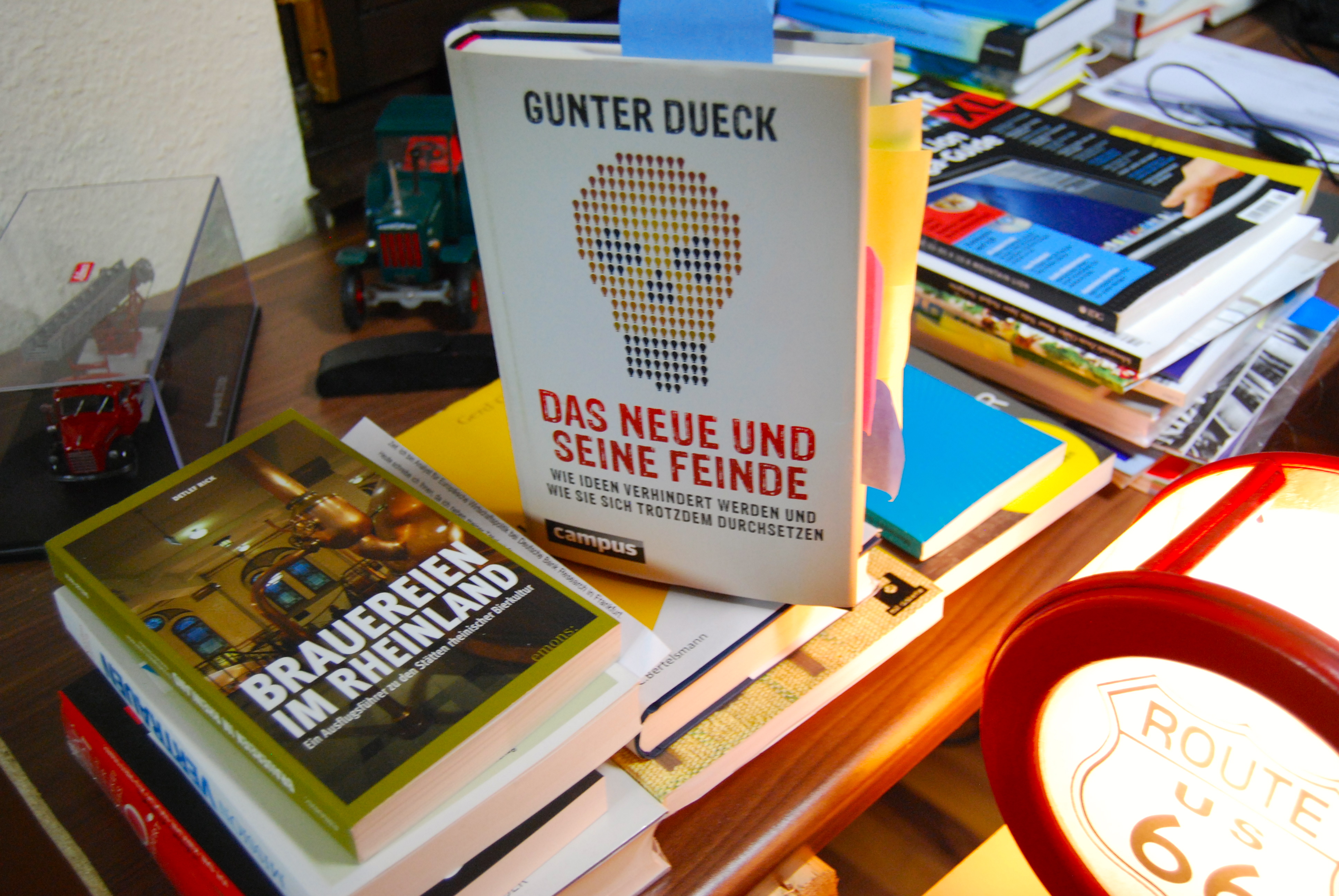 „Die Forschungsinstitutionen des Staates und der Wirtschaft pervertieren diese Maßnahmen, indem sie dadurch Geld verdienen, dass sie die Fördertöpfe unter sich aufteilen! Sie müssen gar keine Innovationen hervorbringen! Sie bewerben sich mit ihren Ideen einfach um die Fördergelder für die Umsetzung genialer Ideen und forschen mit diesen Geldern irgendwie weiter. Wenn dann die Finanzkontrolleure nach den aus Innovationen verdienten Geldern fragen, weisen sie die Einnahmen aus den Fördertöpfen vor. Ja, tatsächlich, sie haben es geschafft, aus ihren Ideen Geld zu machen“, schreibt Dueck in seinem neuen Buch „Das Neue und seine Feinde – Wie Ideen verhindert werden und wie sie sich trotzdem durchsetzen“. Klingt irgendwie nach dem Bestseller von Karl Popper.