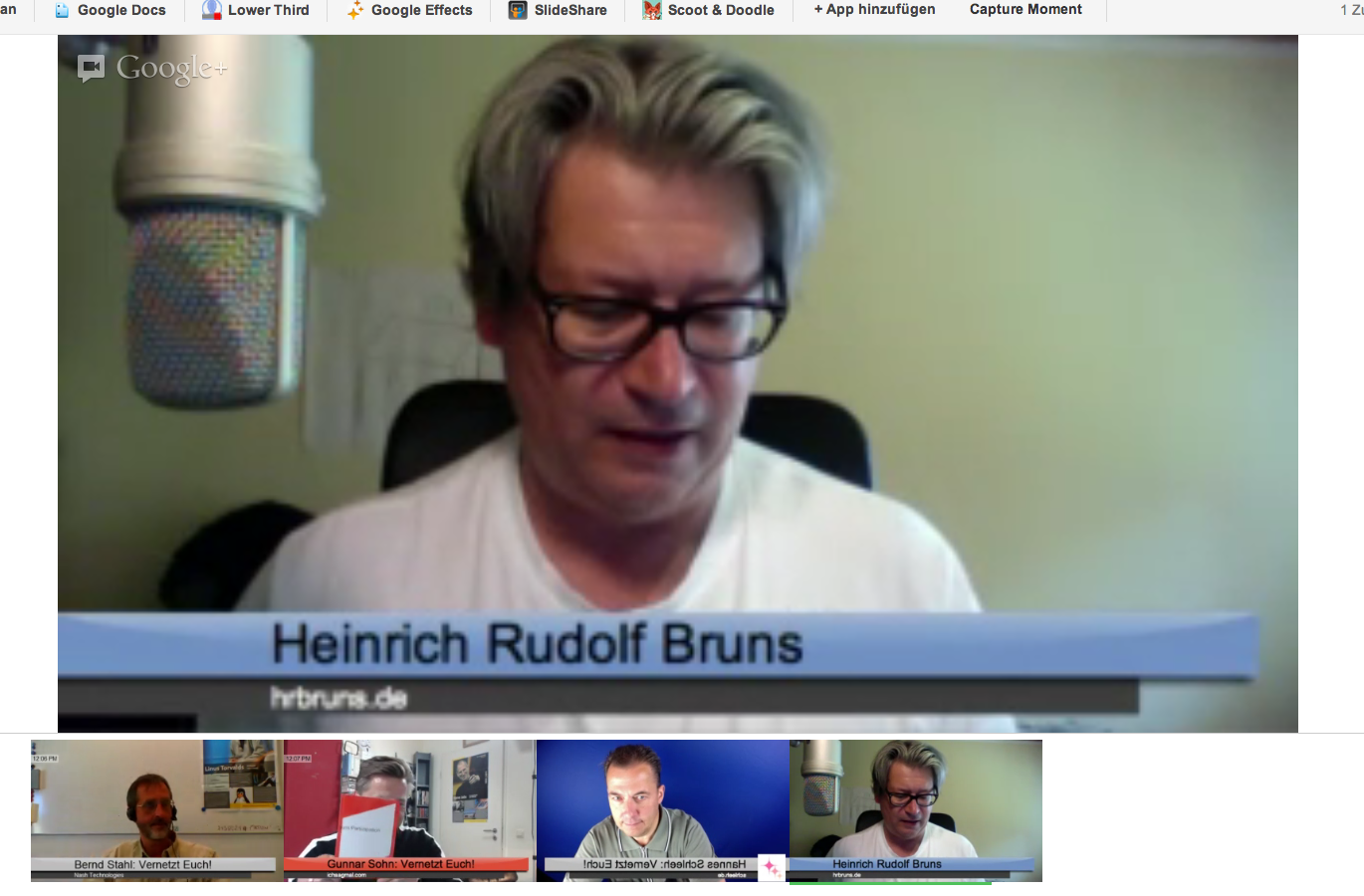 Natürlich auch in der Session mit Dirk über „Wirkung und Einfluss von Wirtschaftsblogs“, die von 12.45 bis 13.15 Uhr ablaufen wird. Stephan ist herzlich eingeladen, an dem Hangout teilzunehmen. Würde mich freuen.