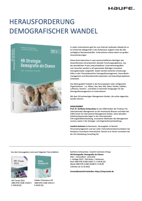 Und zum demographischen Wandel sagte Schwuchow der Zeitschrift Personalführung: